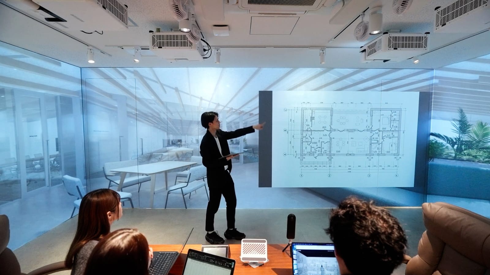 Traditional projectors require dimmed lighting to ensure clarity when projecting onto white walls. However, Immersive Magic Wall, with its strong luminance, eliminates this issue. It allows the room to remain well-lit, enabling participants to view documents and facial expressions clearly during meetings and presentations.