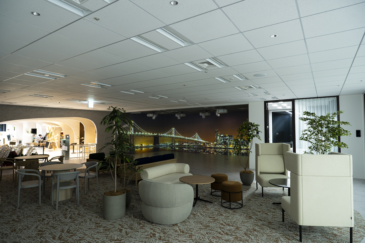社員の主体的な交流を促すだけでなく、来訪するお客様に対しても、これまでにない没入感と説得力を備えたプレゼンテーション空間を実現しました。